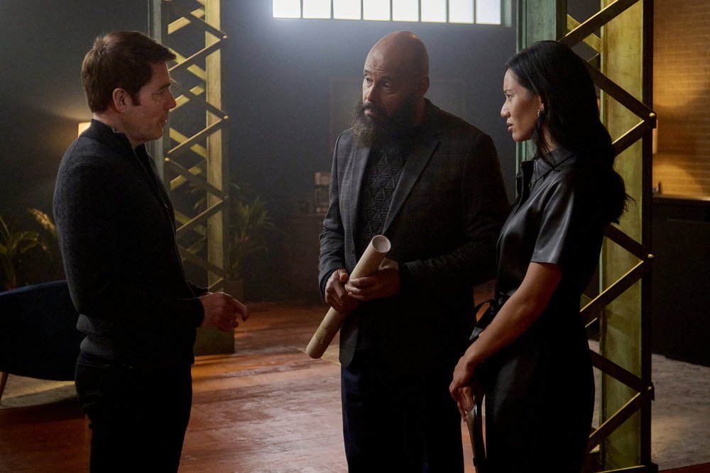 SURREALESTATE -- "Perchance to Dream" Episode 308 -- Pictured: (l-r) Tim Rozon as Luke Roman, Maurice Dean Wint as August Ripley, Elena Juatco as Clytemnestra Lomax -- (Photo by: Albert Camicioli/SE3 Productions Inc./SYFY)
